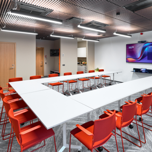 В конференц-зале, расположенном на 3-м этаже корпуса В офисного здания, можно комфортно проводить встречи, тренинги и семинары, не покидая здание.